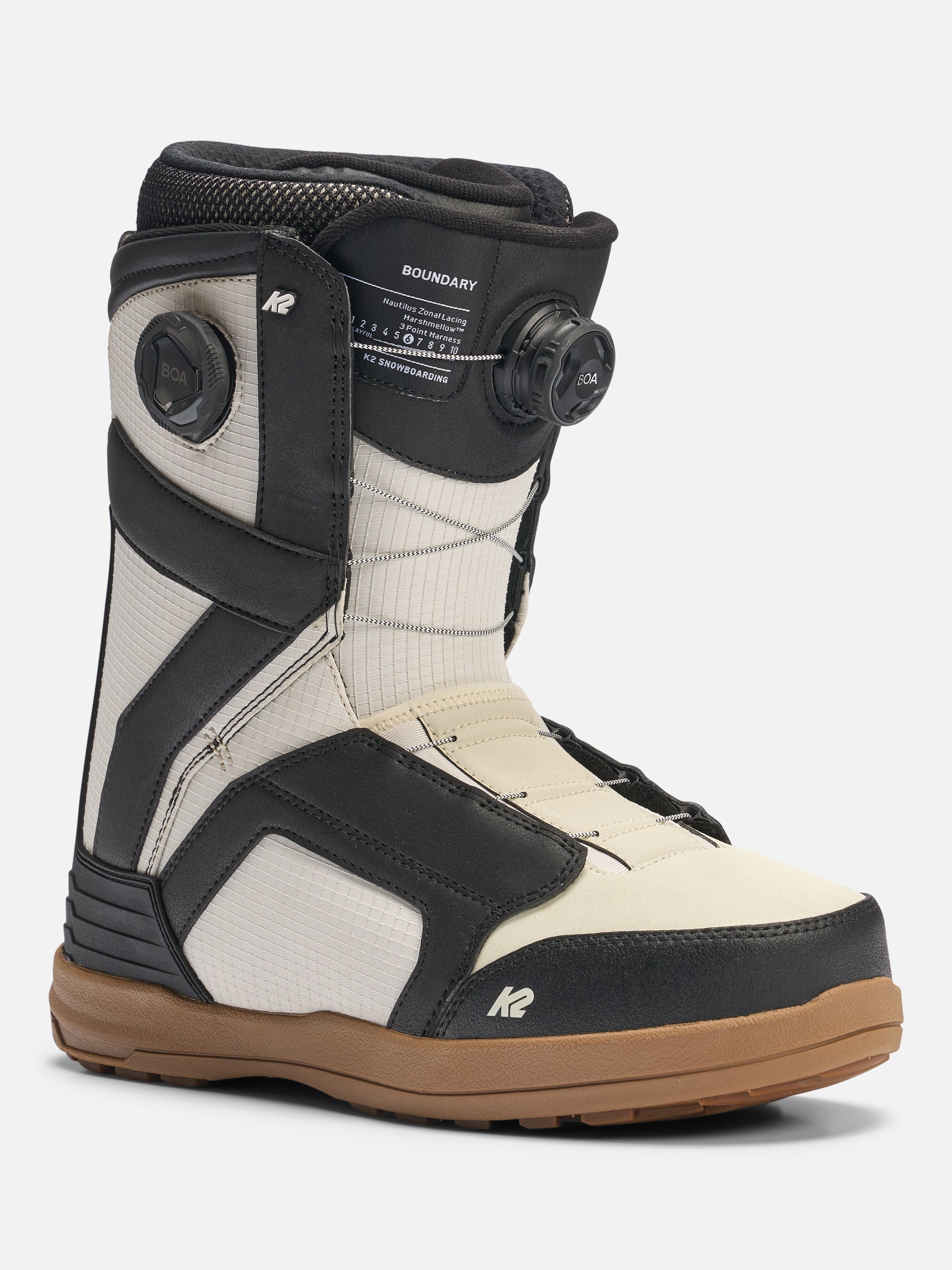 The K2 Boundary snowboard boot features a dual-zone closure with BOA® Fit System to micro-tune your fit. A dedicated BOA® dial for the upper shell and a second dial dedicated to closing the lower part of the shell. The upper cuff of the boot is constructed with our HDR Premium Synthetics. It features a fully articulating design, upping the durability factor while reducing the distortion of the shell as it flexes forward.